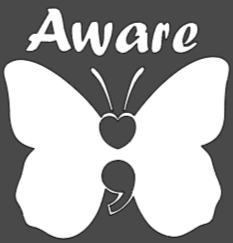 This t-shirt can be ordered on a pink, red, yellow, Irish green, military green, blue, purple, Charcoal grey, or black t-shirt, sizes Small to 5X. This design will be in white. There will be a large design on the back, small design on the left chest, and the Aware logo on the left sleeve. inside the collar is the number for the national suicide prevention hotline, which you may not need but someone you encounter might.