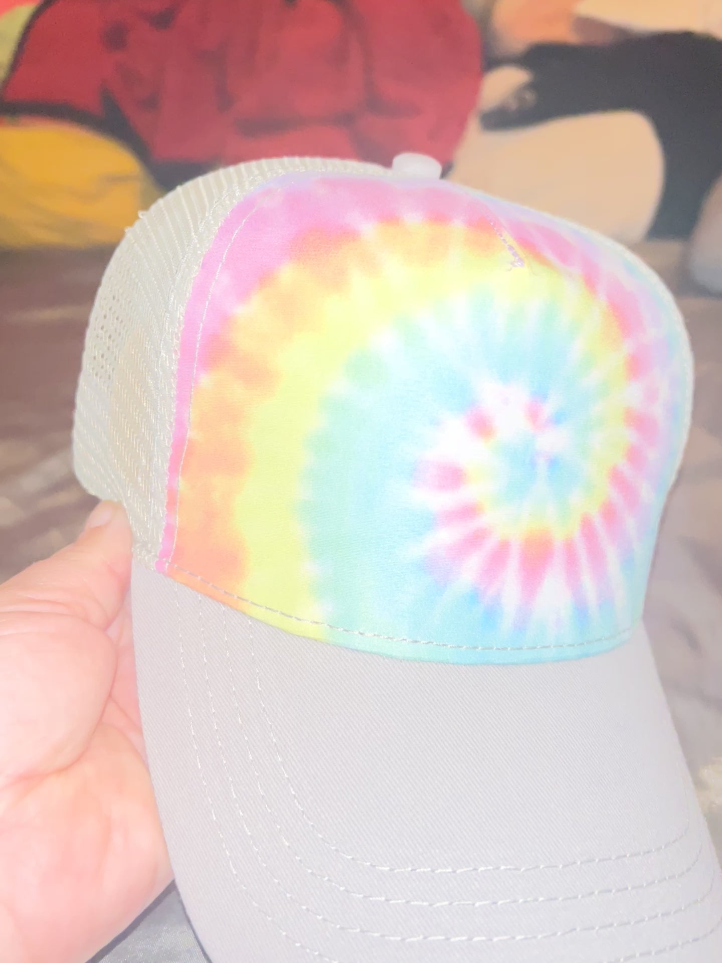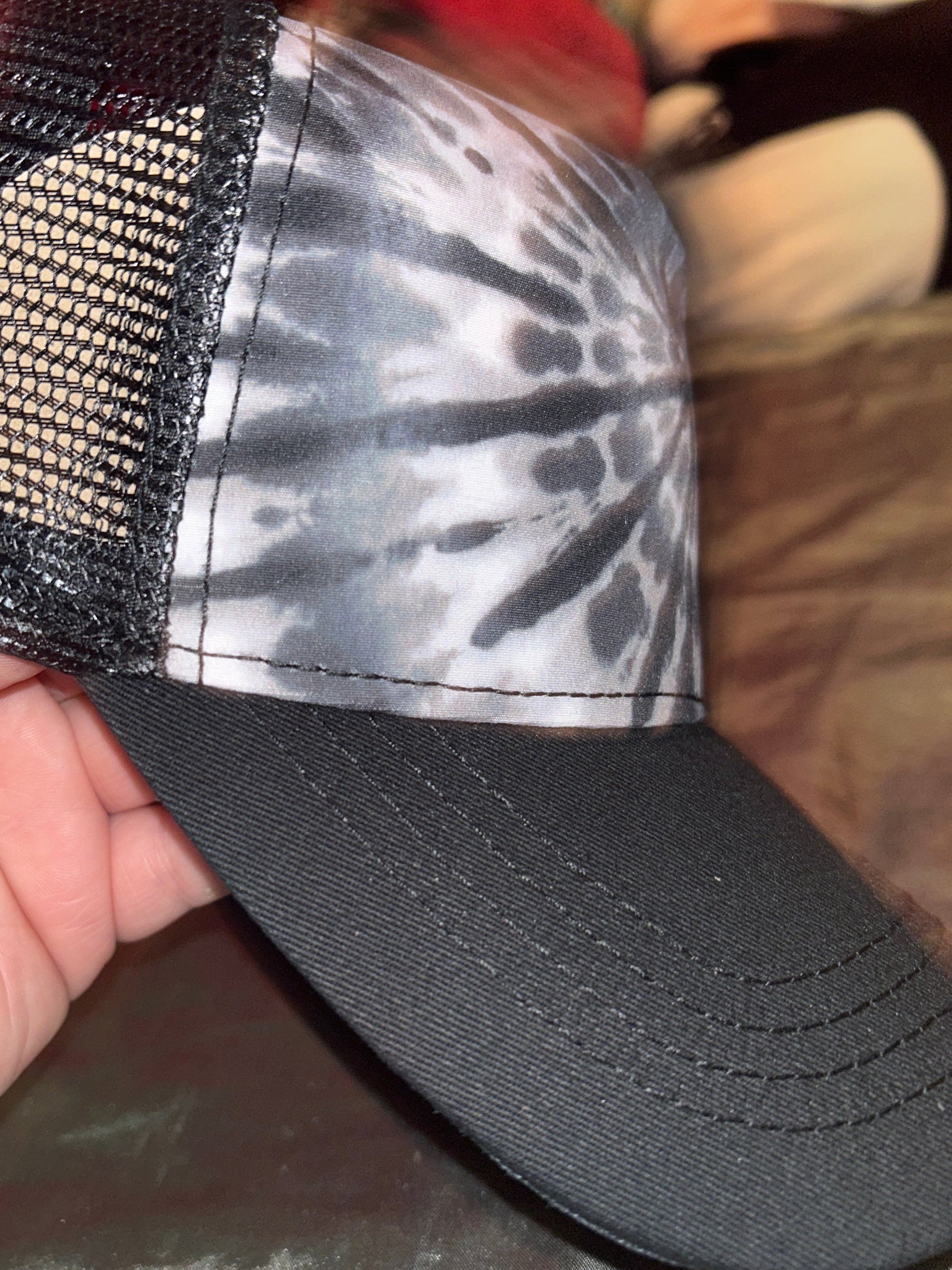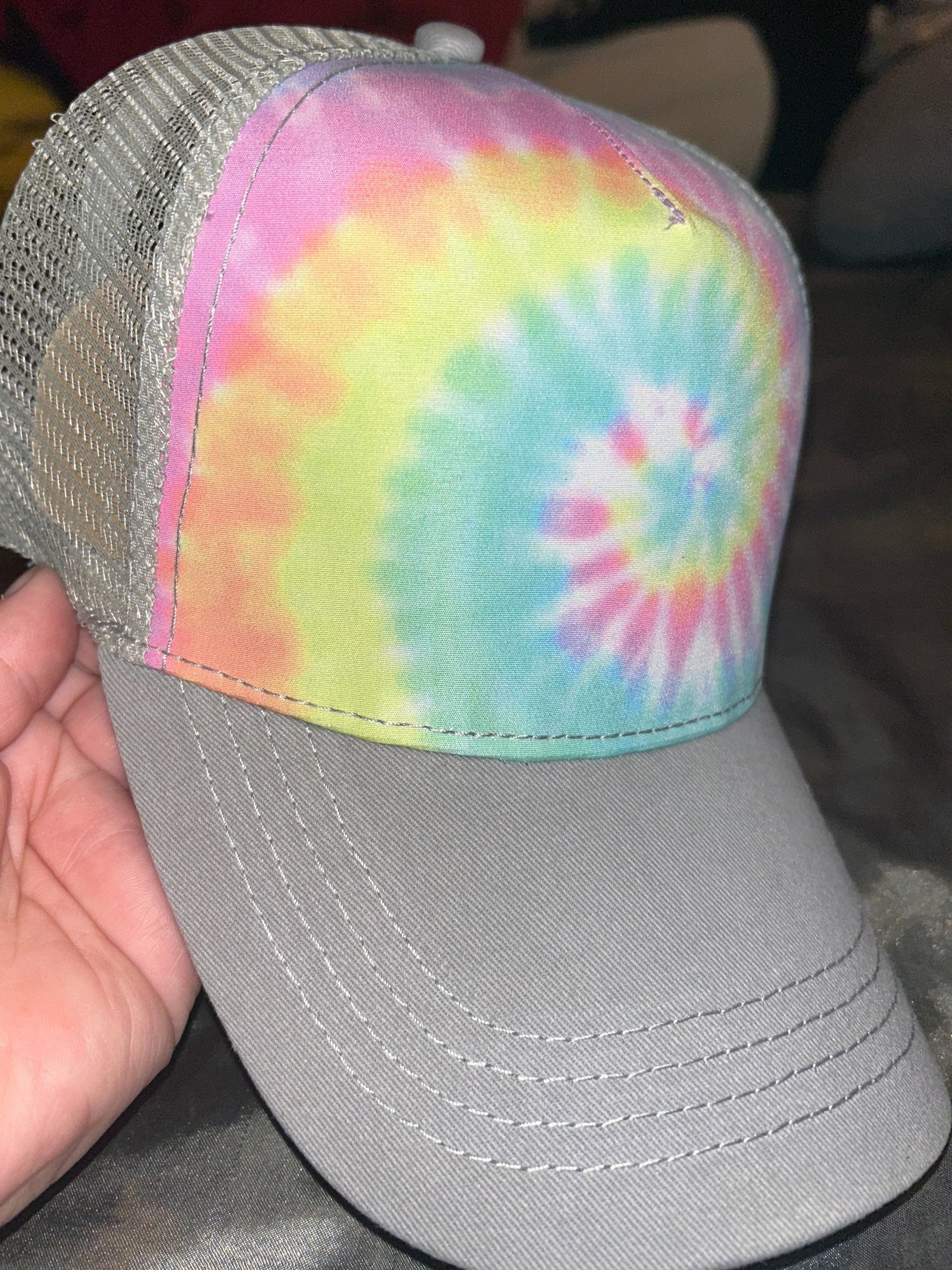 There are three colors of hats- Pale tie dye with grey base, Black and white Tie Dye with black base, and bright tie dye with black base. Multiple colored patches to choose from. Two designs of patches- square Aware End The Stigma or the Butterfly Aware logo. These will be made when ordered in order to be customizable.